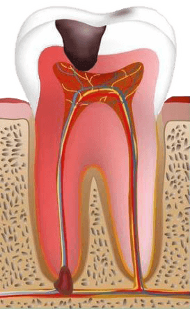Периодонтит - одно из серьезнейших осложнений кариозного процесса. Патогенная микрофлора выходит за пределы корневых каналов и вызывает воспаления в соединительной ткани в области верхушек корней (периодонте), образуя кисту или гранулему.