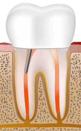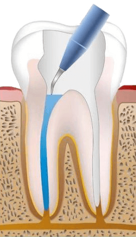 анестезия, удаление старых пломб, трепанация, диагностический снимок, при необходимости временное восстановление зуба, ампутация, экстирпация, медикаментозная обработка и расширение каналов, лечебная повязка, или зуб оставляется открытым;